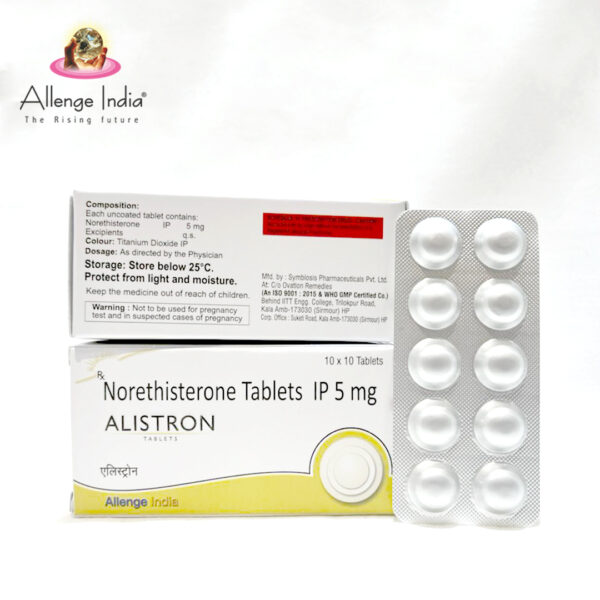 ALISTRON contains Norethisterone 5 mg, a synthetic progestogen that helps regulate menstrual cycles, control abnormal bleeding, and manage endometriosis. It is widely used for treating hormonal imbalances in women, offering reliable and effective period control.