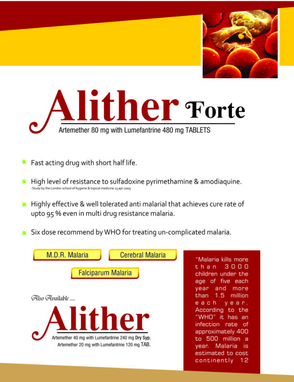 - ALITHER® Forte Tablets – Artemether 80 mg + Lumefantrine 480 mg