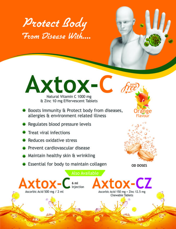 AXTOX® is a premium range of multivitamins, antioxidants, detoxifiers, and immune boosters designed to enhance energy, improve immunity, support metabolism, and promote overall health. It offers capsules, syrups, tablets, drops, and injections to meet the diverse nutritional needs of individuals.